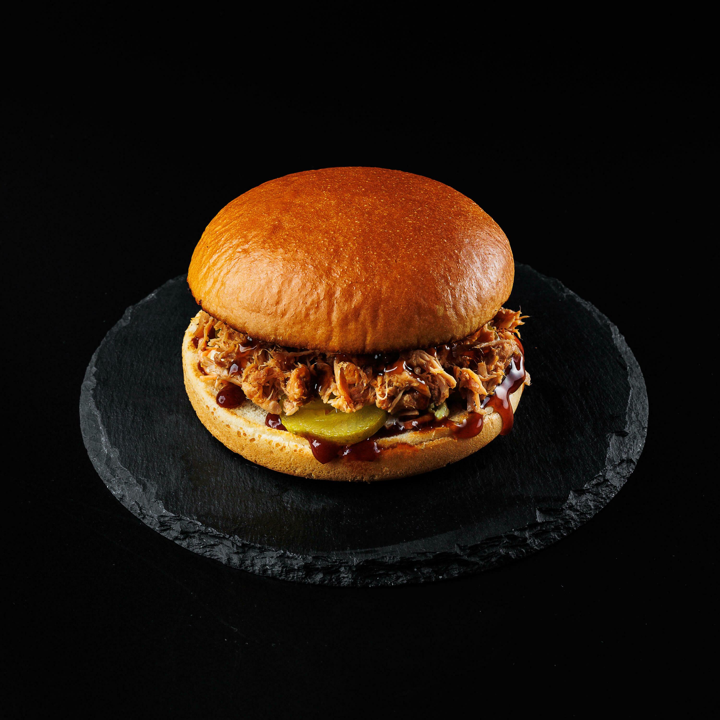 Бургер сэндвич с рваной свининой